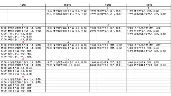 クラス名 | 曜 日 | 時 間 | 指導者 |
