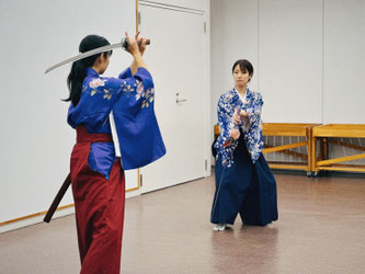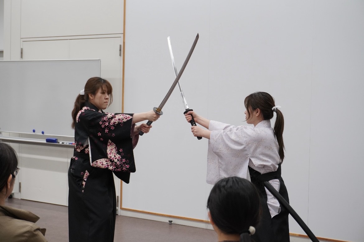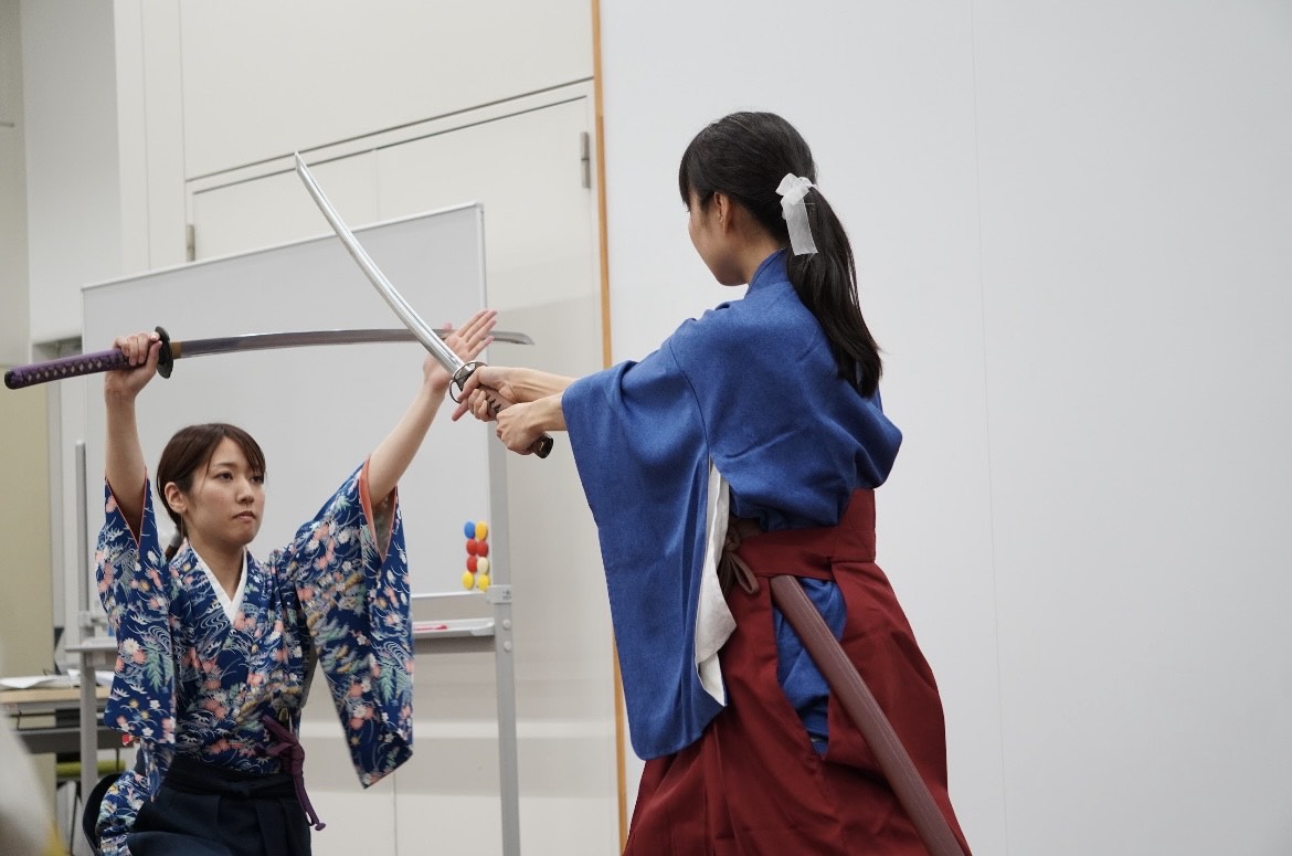 甲冑武者が用いる「太刀」の技法である介者剣術を学びながら、素肌剣術と併合した「打刀」の技法も習得できます。