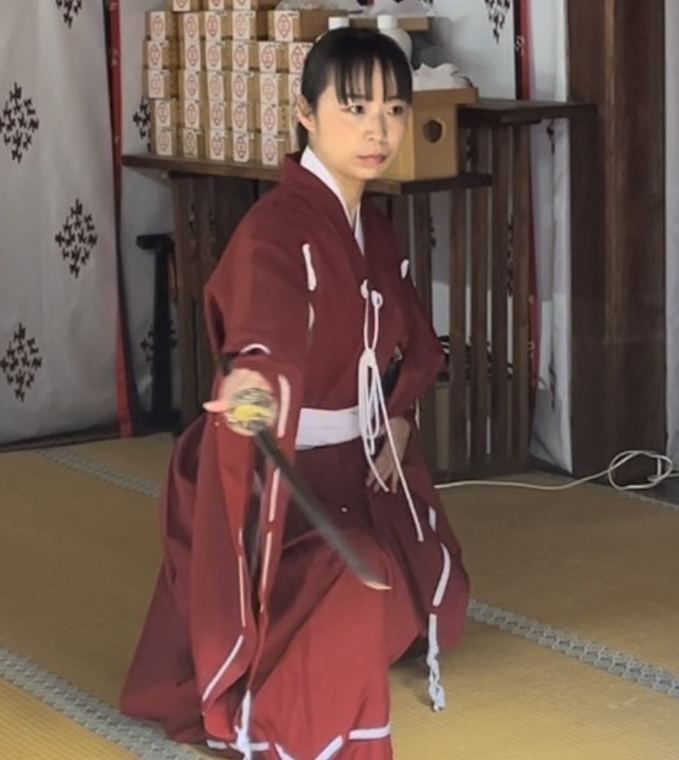 当流では、神道系の哲学を持つ流派として、神楽舞や剣舞の奉納を神社で行っています。